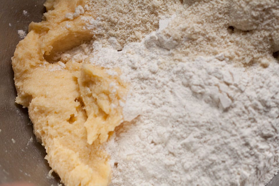 • Add the flour and ground almonds and mix to form a smooth dough.