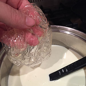 Squeeze out excess water and stir the gelatine into the hot cream.