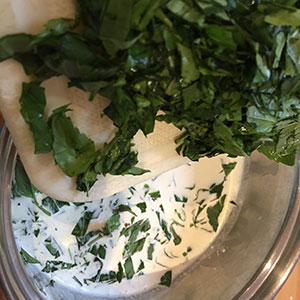 adding basil to cream and milk
