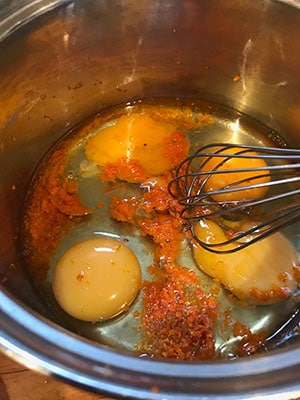 Whisk the orange zest and eggs together until the eggs are well broken up.