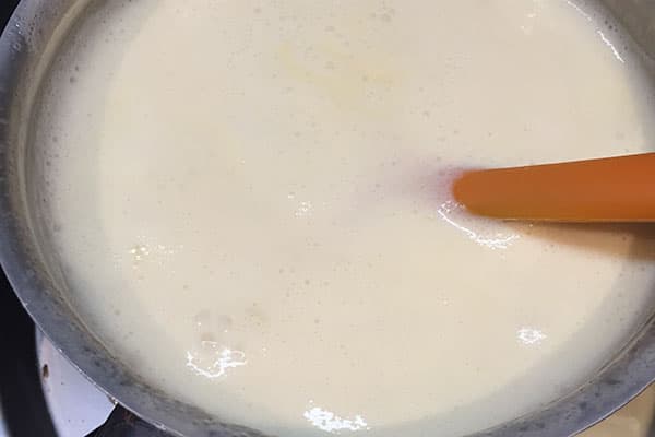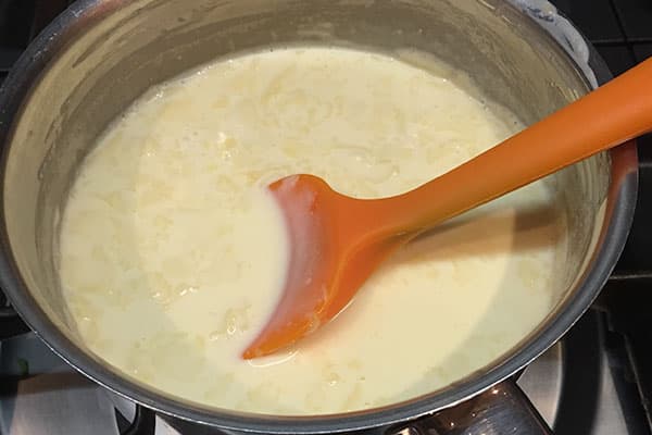 - Increase the heat and bring the cream to the boil, stirring. Continue to boil for 3 minutes stirring constantly.