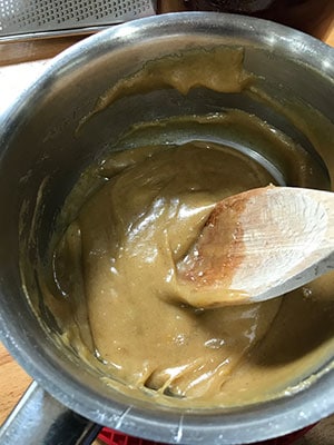 - Place the butter, sugar and golden syrup in a small pan over a low heat. Heat gently stirring until the butter melts and the sugar dissolves. Do this slowly and make sure the sugar has dissolved before removing from the heat.,