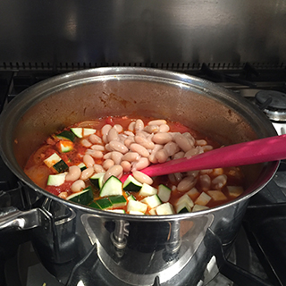 - Add the beans and courgettes and simmer for 10 minutes or until the vegetable are just tender.