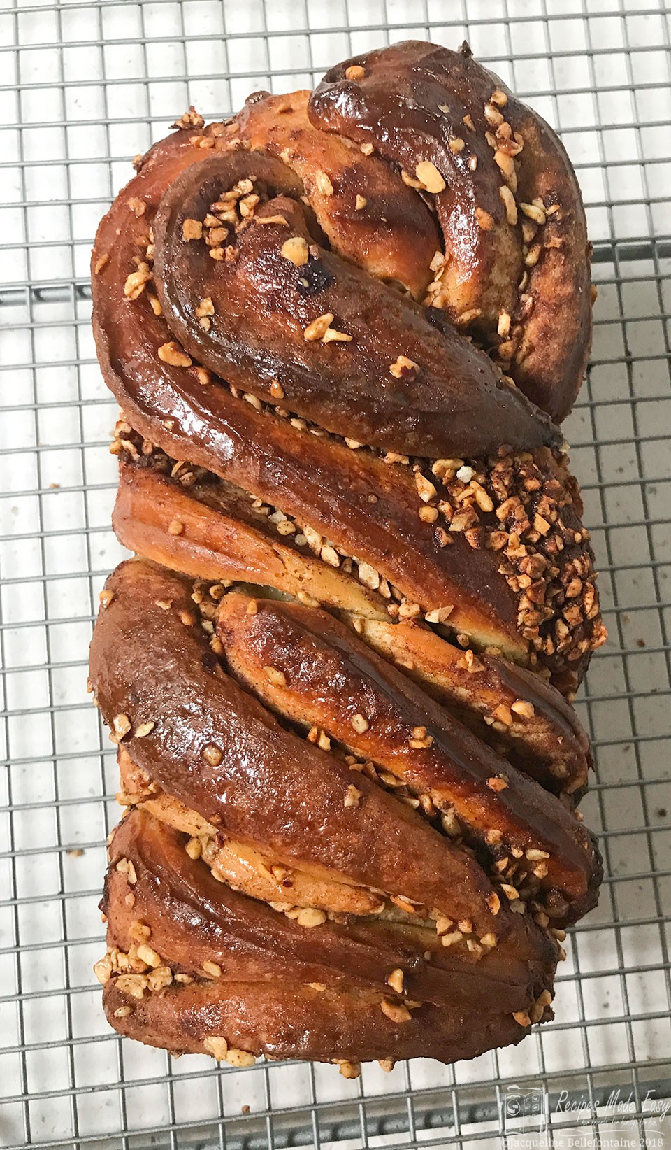 I have used toasted chopped hazelnuts in this cinnamon and nut babka which is glazed with maple syrup. The results a deliciously rich sweet yeasted bread with lots of flavour, which I think looks stunning.