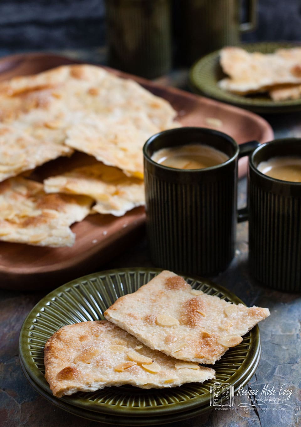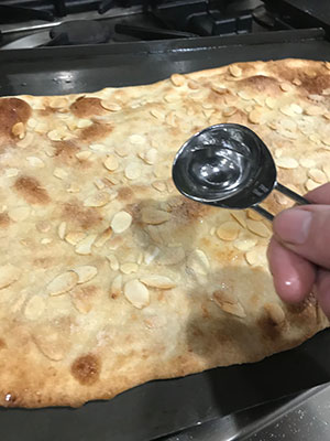 But I was able to deduce that most were made with a yeasted bread, rolled very thinly, brushed with oil and topped with sugar before baking in a very hot oven. Then on removing from the oven, they are immediately sprinkled with Anisette, a sweet aniseed flavoured liqueur.