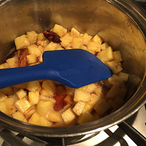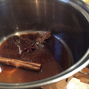 - Place the sugar, rum and spices in a large saucepan and heat gently stirring until the sugar has dissolved.