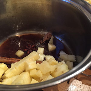 - Add the pineapple and heat gently for 3–4 minutes. Remove from the heat cover and allow the flavours to infuse for several hours.