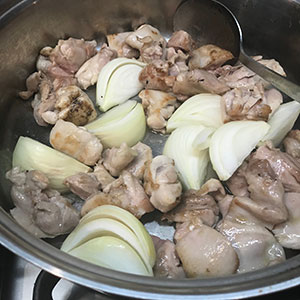 - Heat the oil in a deep frying pan or flameproof casserole with a lid. Add the chicken pieces and brown on all sides.