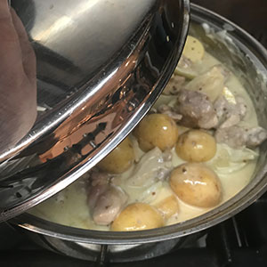 - Cover and cook for 40 minutes on a low heat until the potatoes are tender.