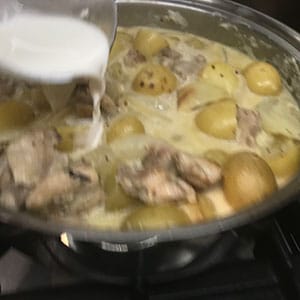 This is the type of family dish I really like to serve midweek when the evenings are a little cooler. It is quick and easy to make and, of course, very tasty. Despite its name, this dish is surprisingly low in calories and fat as I have used a low fat crème fraîche to give it its creamy taste and texture and then thickened it up a little at the end of the cooking time.