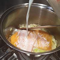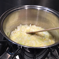 • Melt the butter in a saucepan and sauté the onion gently until softened.