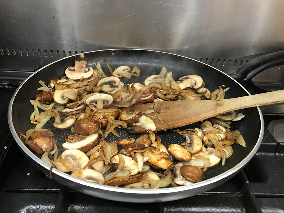 - Slice the onions and mushrooms.