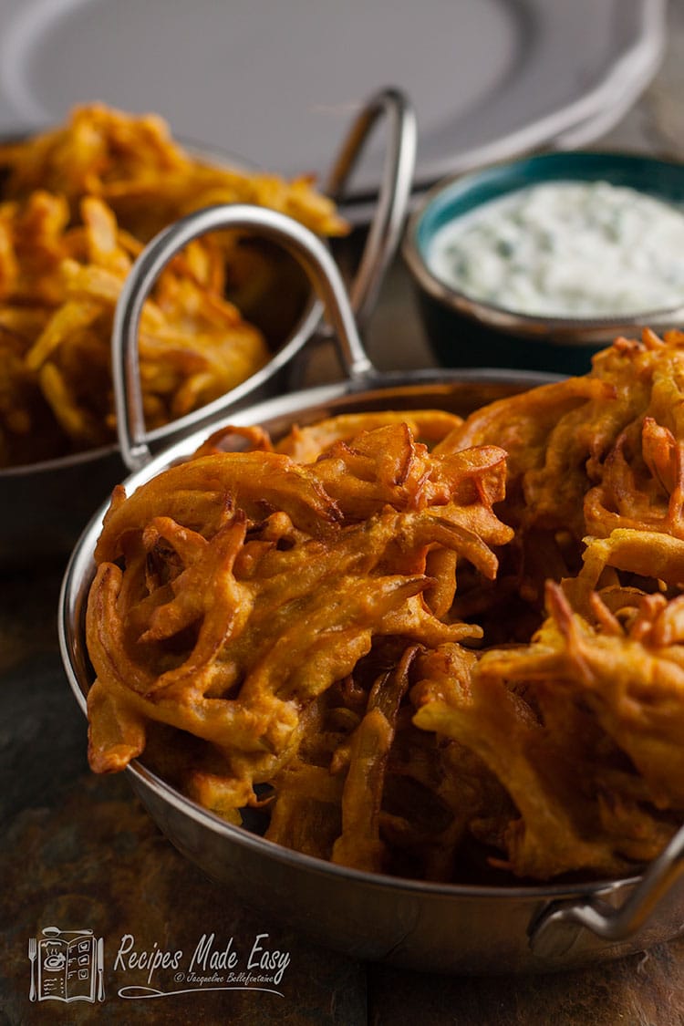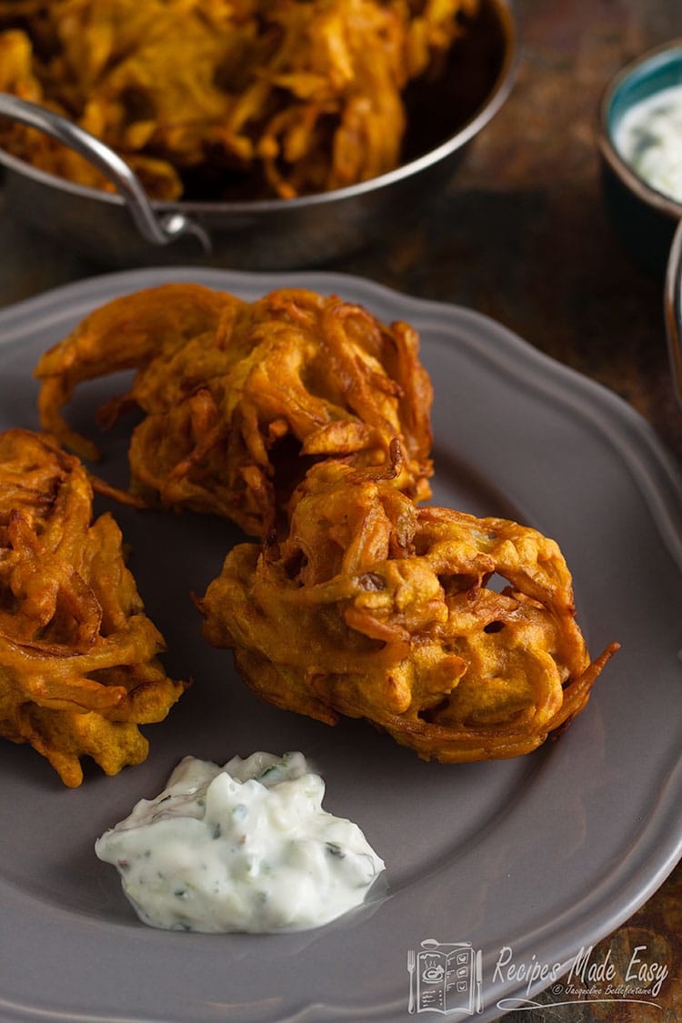Step by step Easy Onion Bhajis and Cucumber Raita