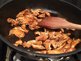 • Combine the spices for the spice mix and add to the bowl. Mix well until the chicken is coated in the spice mixture and set aside.