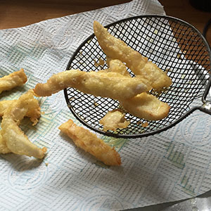 • Alternatively consider making some vegetable tempura. Courgettes works well and go nicely with the fish.