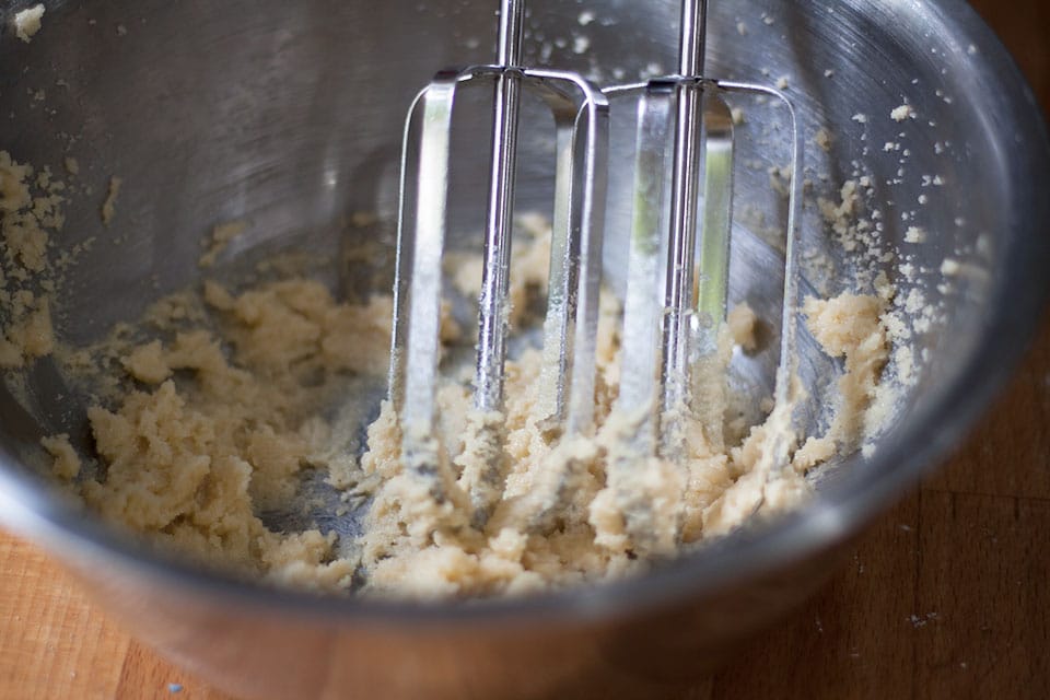 - Gradually beat in the egg a little at a time, beating well after each addition. Add the vanilla extract if using. I like to add it when serving the biscuits plain.