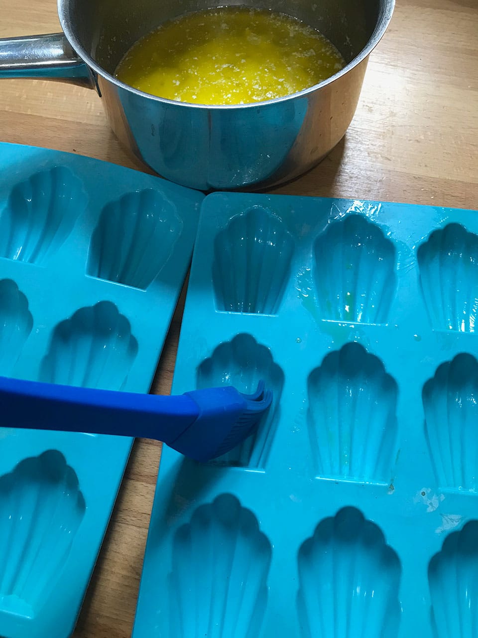 Although I am not a massive fan of silicone bakeware, I rather like them for madeleines as they do not stick. They also have a deeper, better shape than some of the metal tins I have seen. Don't worry if you don't have the special tins you could always bake them in a bun tray or cupcake tins instead. They won't be the classic shape but they will taste the same.