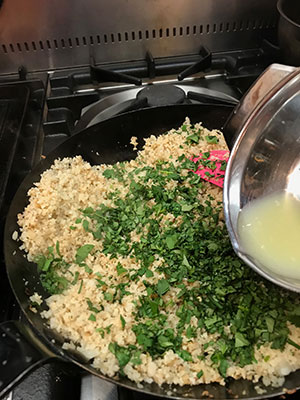 - Stir the lime juice and zest into the cauliflower couscous along with the chopped coriander and serve with the chicken.