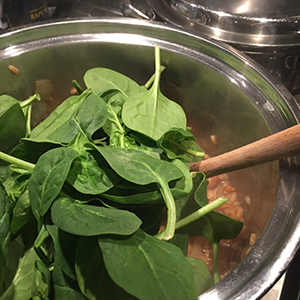 To cook in a pressure cooker, follow the steps 1–4 above. Add 600 ml stock, secure the lid and bring to high pressure. Reduce heat to stabilise the pressure cooker and cook for 7 minutes. Release the pressure quickly (see instruction manual). add the spinach and complete as above.