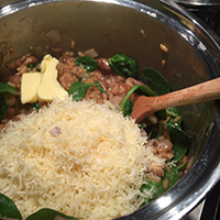 • Stir in the spinach (if using) into the risotto. Remove from the heat and add the remaining butter and parmesan cheese. Season to taste, then allow to stand for 5 minutes before serving.