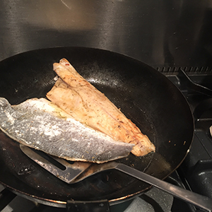 Step by step pan fried sea bass with cream sauce