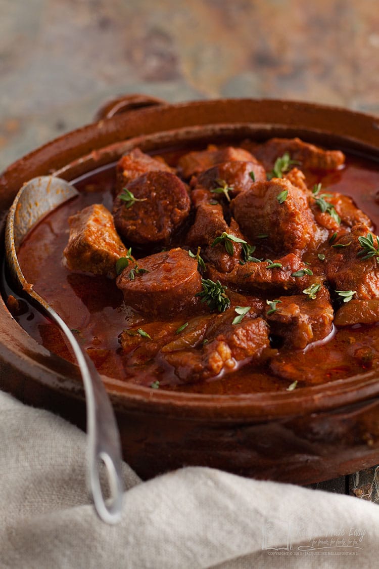 This Pork and Chorizo stew was one of the first recipes I posted here on Recipes Made Easy. Since then I have made it dozens of times over. As I was updating the recipe I pondered with the idea of changing the name to Casserole instead of stew, as not only have I served it as a hearty family meal in the winter, it has been good enough to serve at dinner parties. But in the end, I really felt that stew is the right name for it. After all this is not a pretentious dish, it is all about well flavoured home cooking and should be celebrated as such; so stew it is