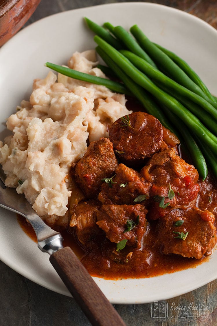 This is definitely my kind of meal. I absolutely love pork and chorizo and the stew looks so rich and delicious!