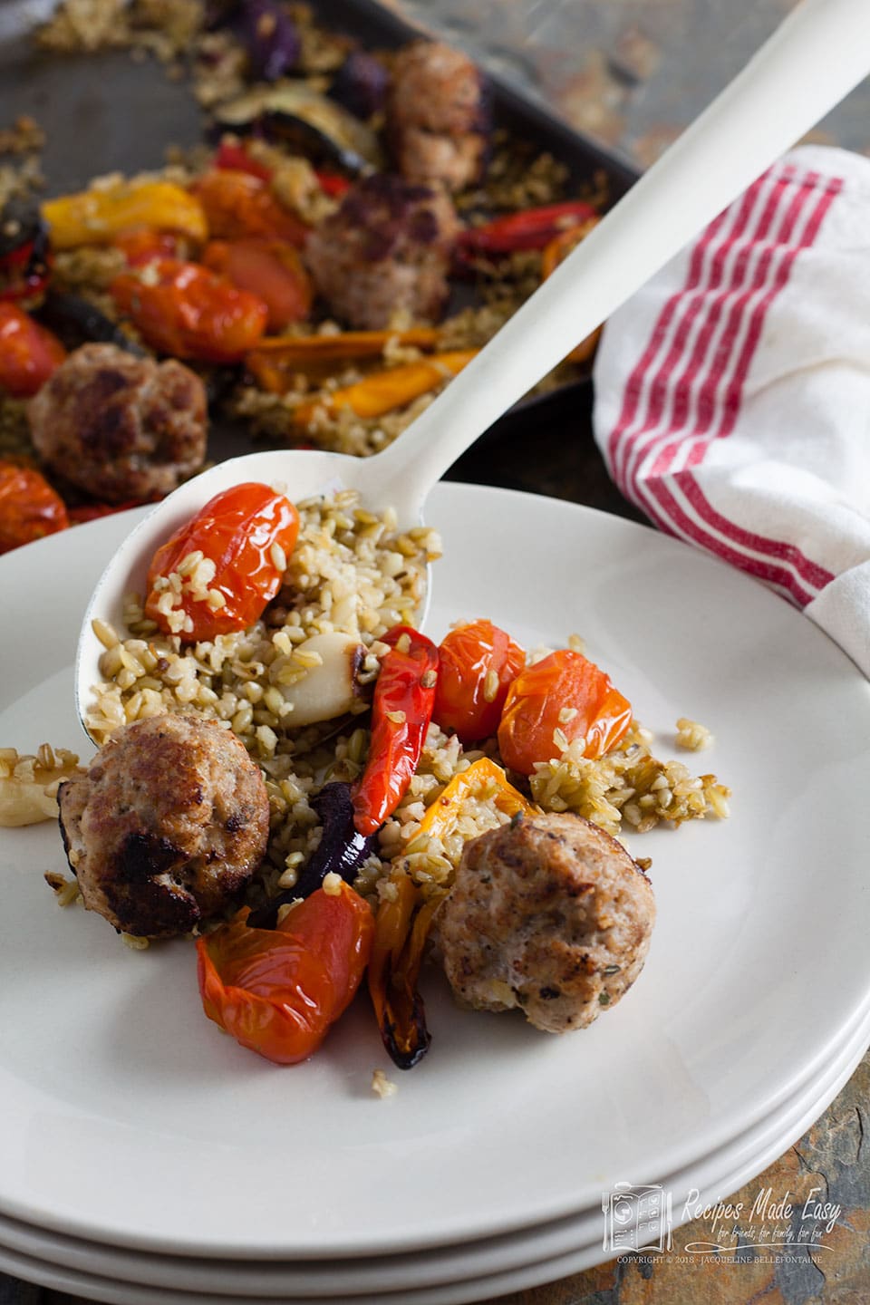 This is so my kind of meal! I love pork meatballs and roasted veg and grains like freekeh, so I know I would adore this. What a brilliant #midweekmeal. Let me know when you are next making it and I'll pop round 😉 Eb x