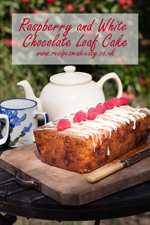 There is something rather decadent about white chocolate and with the addition of fresh raspberries it makes a humble loaf cake something more indulgent and special. I recently made one for my eldest son who is rather partial to raspberry and white chocolate cookies , so I thought it was the perfect flavour for his birthday cake. Being a loaf shape it was easy for him to transport to work and I'm told it went down a treat. So much so that one of his friends asked for the recipe.