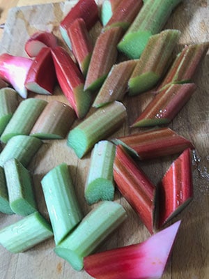 - Wash and trim the rhubarb and cut into short lengths.