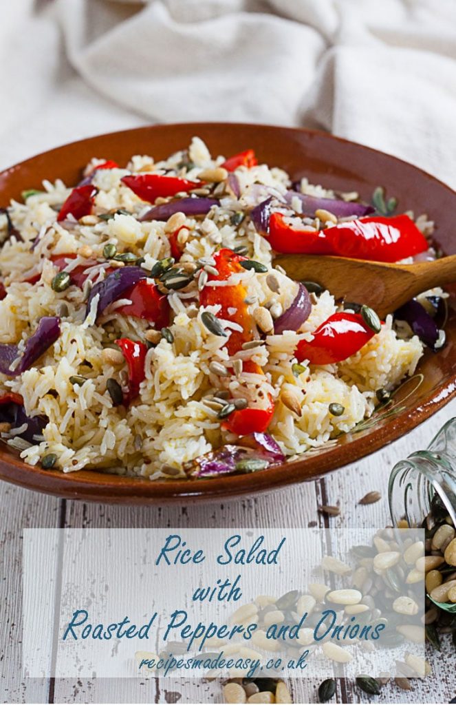 A simple and colourful side dish, this rice salad with roasted peppers and onions is a great accompaniment to roasted or grilled meat and fish.