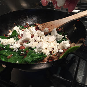 Once the spinach has wilted remove from the heat and crumble in the feta.