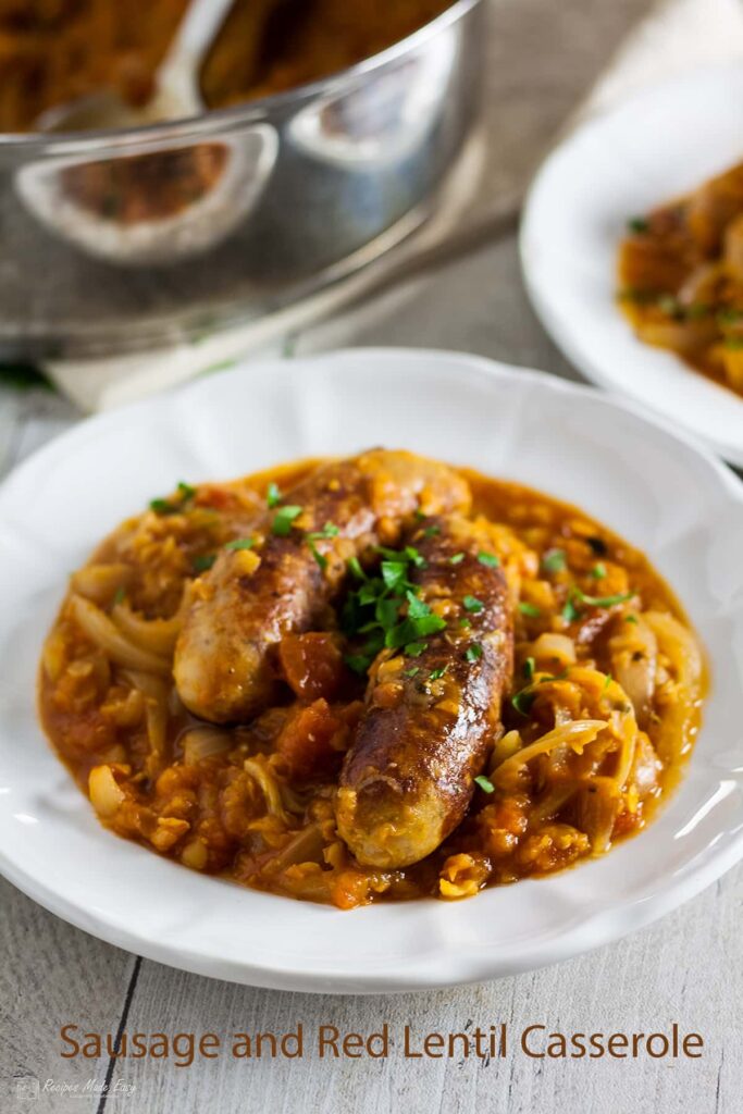 This one-pot easy sausage and red lentil casserole is a great, quick and easy to prepare nutritious and economical meal, that all the family will love. Although there is no need to add extra vegetables or sides if you really are hungry, a piece of crusty bread or some veggies on the side wouldn't go amiss.