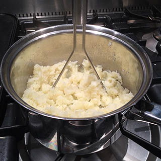- Peel the potatoes and cut into even size pieces. Cook in lightly salted boiling water for 15 minutes or until tender, drain and mash well.