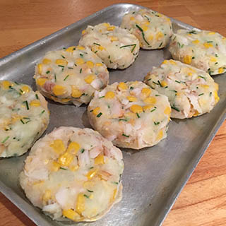 I have just tried them - no sweetcorn - chives and parsley - made a hole in the middle and put some grated cheese then covered the hole with the fishcake mix. they are at the moment in the fridge chilling. going to serve with asparagus and julienne carrots. looking forward to it.