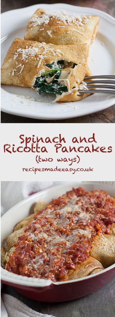 The filling for these pancakes is quick and easy to make. Spinach and ricotta is a classic combination in Italian cooking and it works really well as a filling for pancakes.