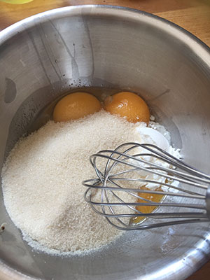 whisking sugar eggs and cornflour