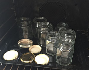 To sterilise jars – Wash your jars and the lids in hot soapy water. Rinse and place upside down on a roasting tray while they are still wet. Place in a preheated oven at 160-180ºC for about 10 mins.