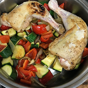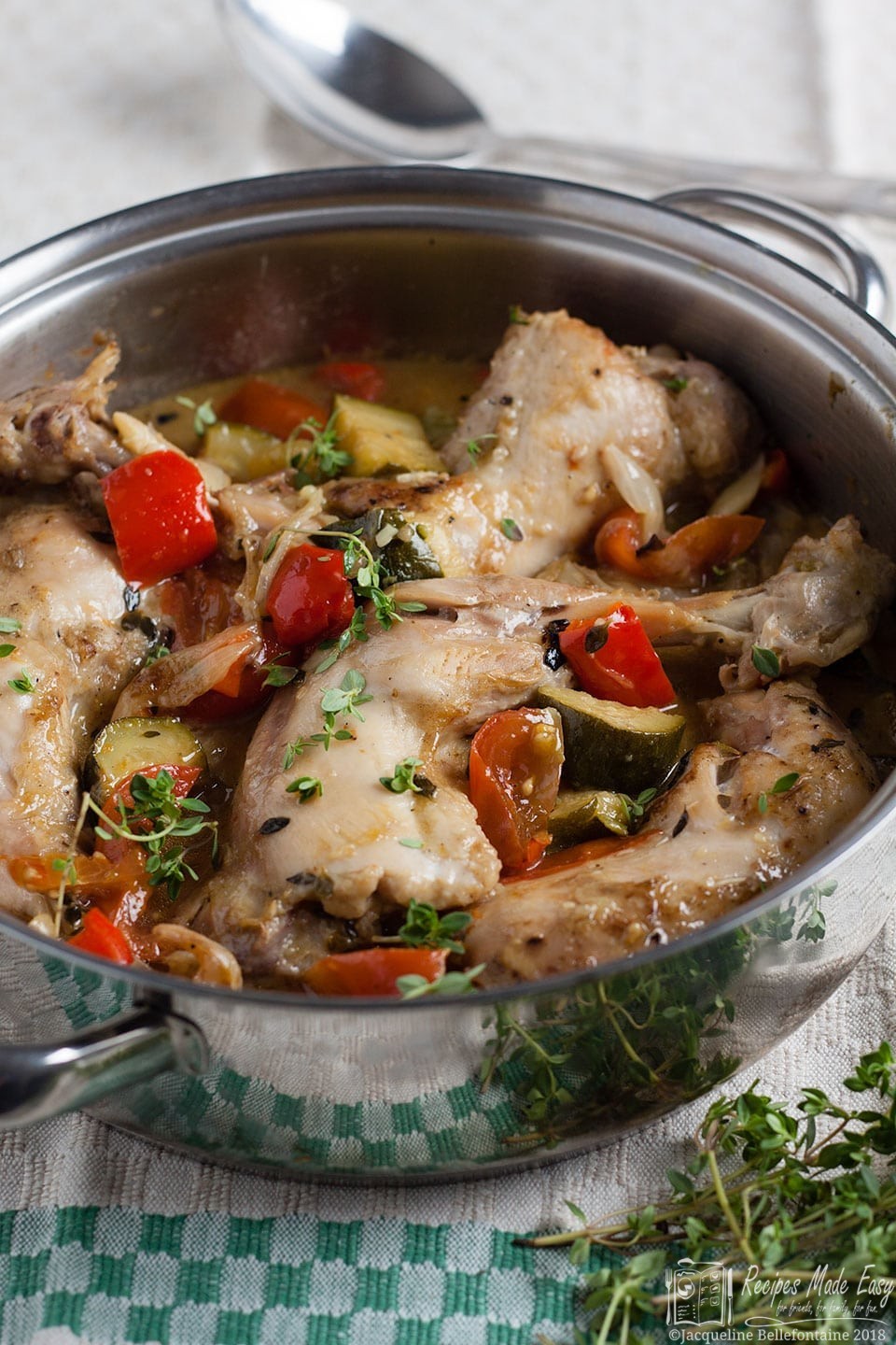 A light casserole is ideal for the warmer months. Summer Chicken Provencal is flavoured with fresh summer vegetable and  is cooked on the hob. No need to turn the oven on.