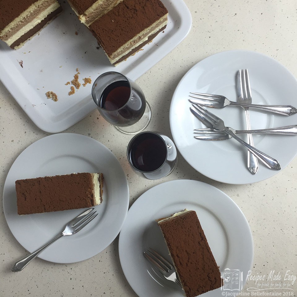 While you can make the cake ahead of time, once you start making the mousse you will only be able to take a short break while the custard cools but if you leave it too long it will also start to set. So throughout the making of the mousse you will need to keep an eye on the mixture, so that it doesn't set before you have made all the layers.