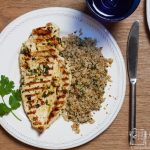 Stir the lime juice and zest into the cauliflower couscous along with the chopped coriander and serve with the chicken.